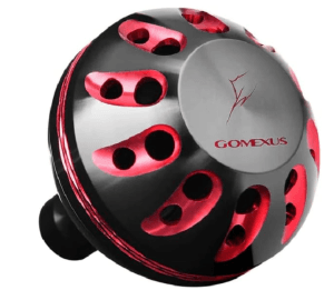 T型ノブなのでそのままでも使えますが、ノブを「ラウンドノブ(丸型)」に交換すると、重たいオモリの回収が楽になり、大型イカの引きにも力負けしません。